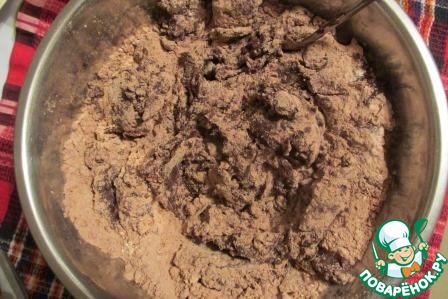 Соединяем шоколадно-масляную смесь и мучную смесь.