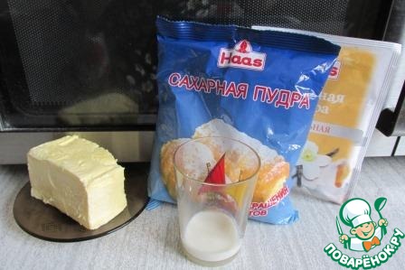 Совсем мягкое масло немного взбиваем, потом в три приема добавляем сахарную пудру, взбивая миксером.