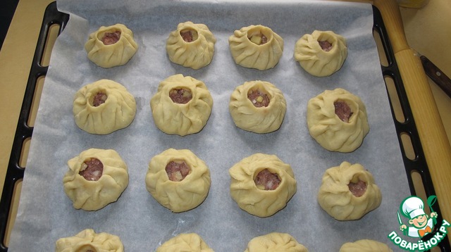 Разделить тесто на шарики, размером с грецкий орех, сформировать вак-беляши.