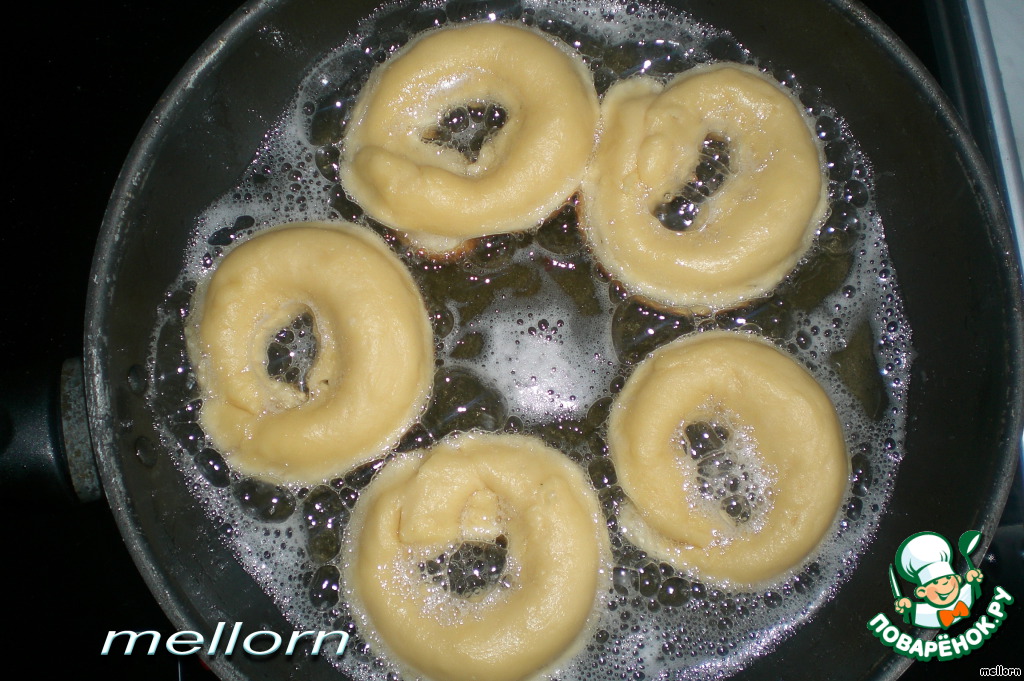 Подготовленные баранки жарить на сковороде в раскаленном масле с обеих сторон.