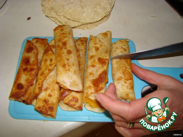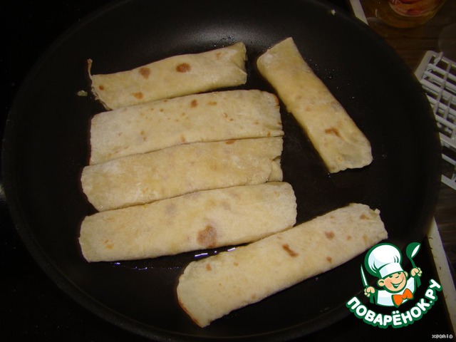 И сворачиваем в три- четыре раза.Рулетики должны быть плоскими