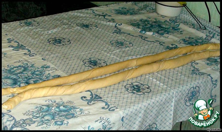 Затем кладем 2 "колбаски", которые у нас получились, рядышком