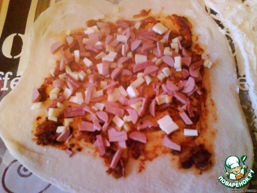 Готовим тесто по рецепту хлебопечки или ваш любимый вариант, примерно - 1кг готового теста