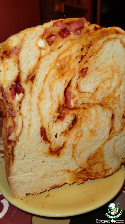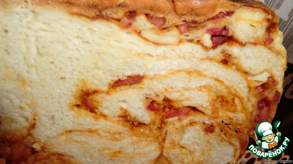 | С моими любителями выпечки, особенно несладкой, приходится выдумывать иногда... Вот такой хлебушек получился, а внутри его вкуснятина - пицца! Кусочки сыра расплавились и интересно растеклись внутри... чем больше видов сыра положить, тем интереснее, я взяла 2 вида... хотя и с одним можно уже порадовать своих любителей пиццы. Можно печь как я в хлебопечке, а можно и формы разнообразные использовать. |