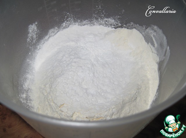Муку смешать с крахмалом, разрыхлителем и солью.