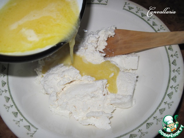 Лепешки творожные с сыром, колбасой и маринованным огурцом