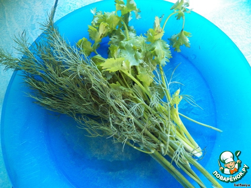 Зелень нарезать мелко, чеснок подавить или натереть на мелкой терке.