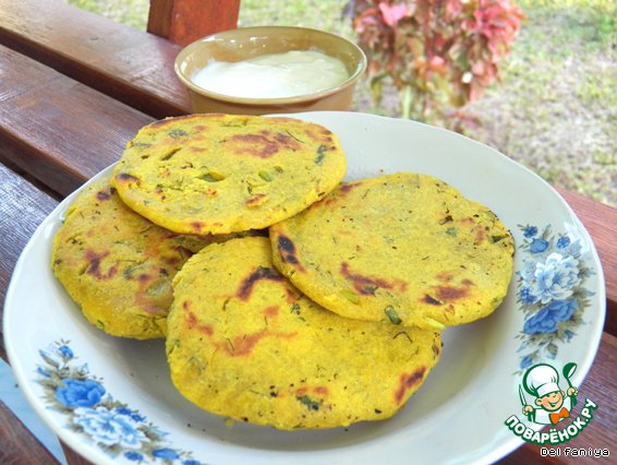 | Яркие солнечные лепешки с вкраплениями зелени могут служить прекрасной альтернативой привычному хлебу для разнообразия вашего ежедневного меню. На праздничном столе они вызовут приятное удивление гостей. Подойдут для вечеринки, когда нет времени готовить много сложных блюд. Можно приготовить заранее лепешки и различные дипы (соусы) к ним. Мы любим их есть с маринованными овощами, смешанными со свежей зеленью и домашним йогуртом. |