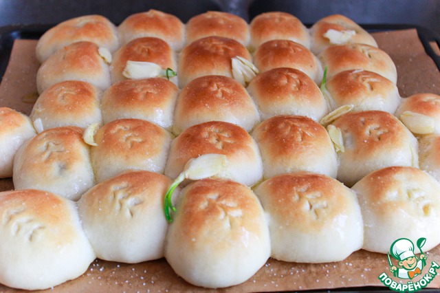 Смазываем заготовку перед выпечкой чесночным маслом, у меня ушла половина приготовленного масла.