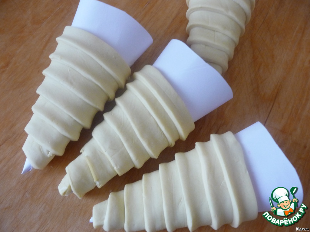 У меня нет специальных формочек для выпекания трубочек, я их сделала сама из бумаги.