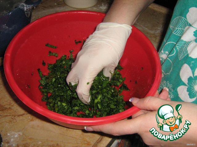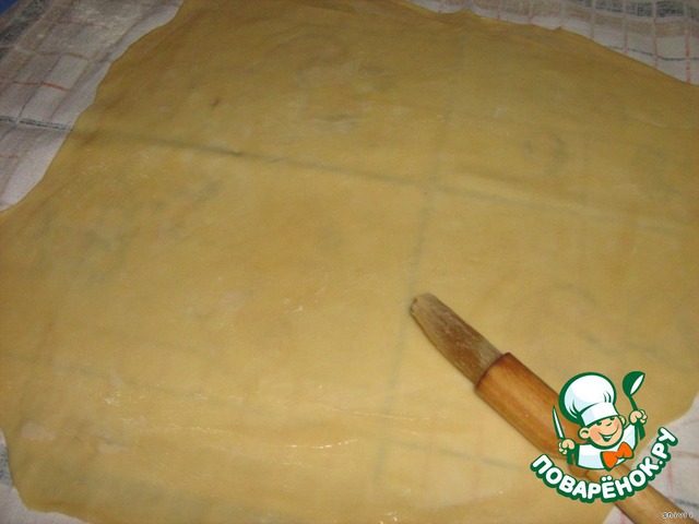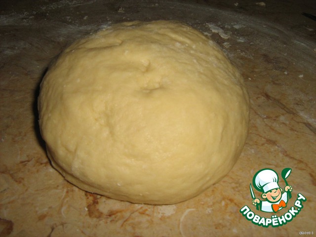 Скатать его в шар, шарик должен блестеть. Покрыть его пленкой и оставить на столе. Пока готовится начинка.
