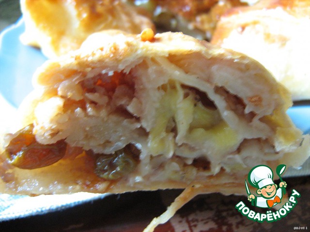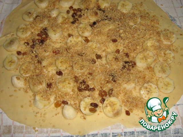 Этот струдель - с бананами и изюмом. Впервые делала такую начинку. Очень необычно получилось!
