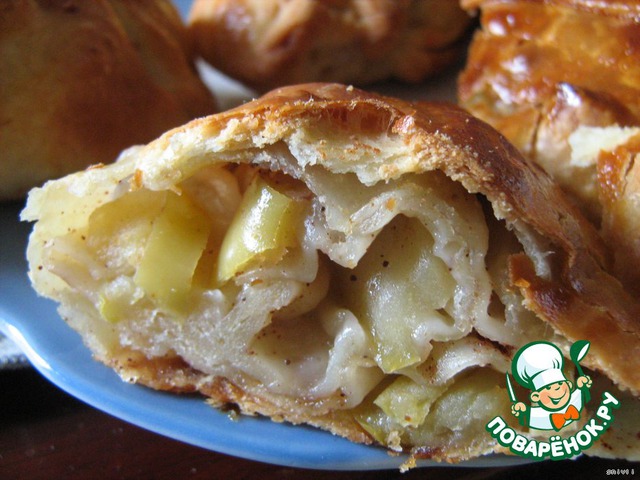 Вот такие красавцы! Разрезать их нужно пока не остыли, иначе тонкое тесто раскрошится под ножом.