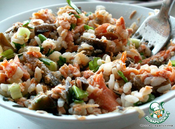 Рис отварить в подсоленной воде, откинуть на дуршлаг.
