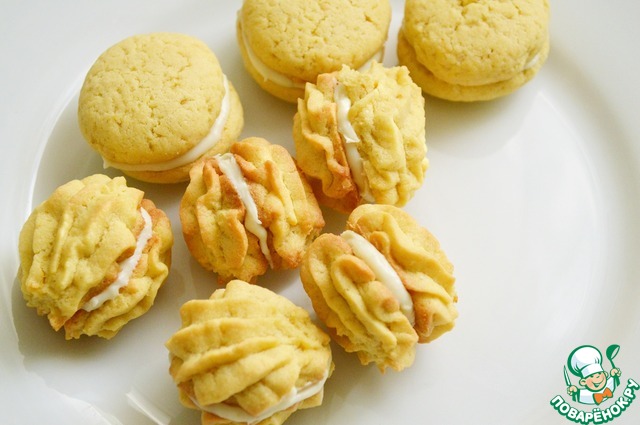 6. Духовку разогреть до 180С. Противень застелить пергаментом. Тесто с помощью кулинарного мешка отсадить на противень. У меня тесто получилось слегка густое. Я часть печенья слепила просто руками. Печь печенье 10 минут.