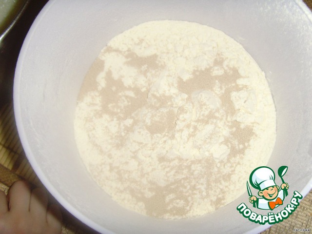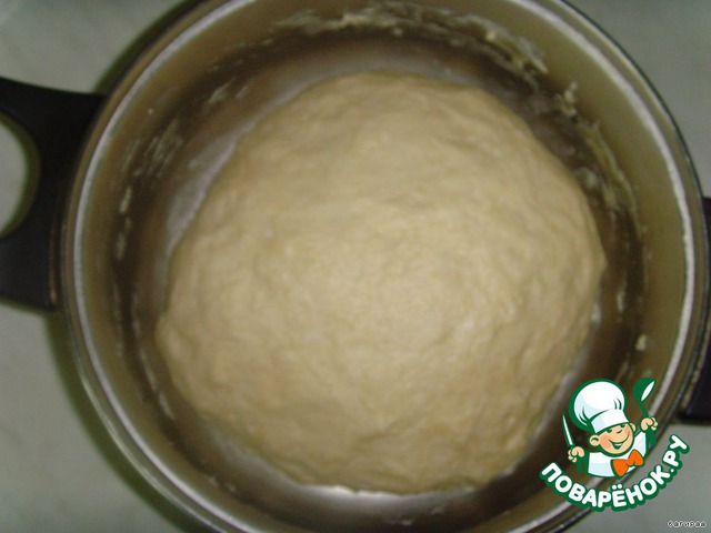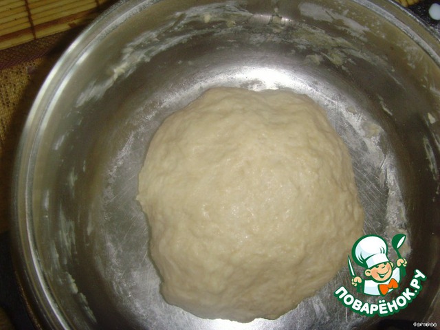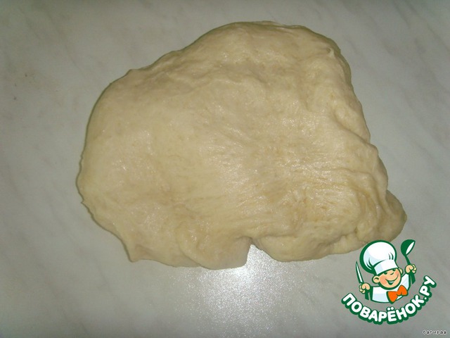 Смешать мучную и кефирную массы,замесить тесто(тесто-супер,не липнет к рукам,в общем работать с ним одно удовольствие).
