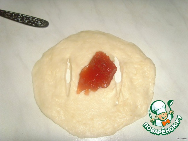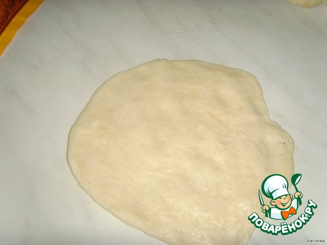 а теперь начнем лепить наши вкусняшки,для этого разомнем каждый кусочек в лепешку.