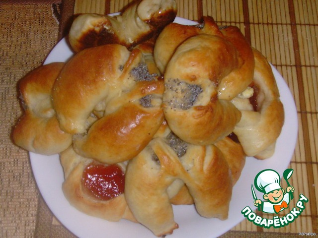 Духовку нагреваем до180 градусов,отправляем наши вкусняшки на смазанном растительным маслом противне, в разогретую духовку на 15-20 минут.Горячие вкусняшки смазать взбитым желтком с молоком.