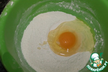 Перемешать муку, сахар и пекарский порошок.