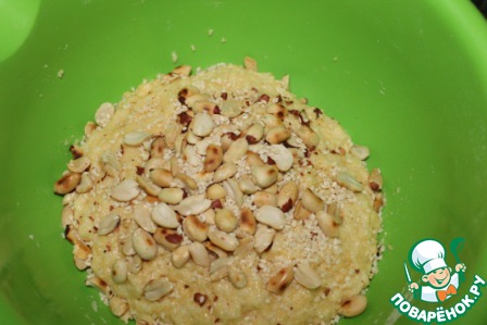 Потом добавить очищенные орехи, кунжут и лимонную цедру (по желанию), я вместо цедры добавила специальное эфирное масло лимона, перемешать.
