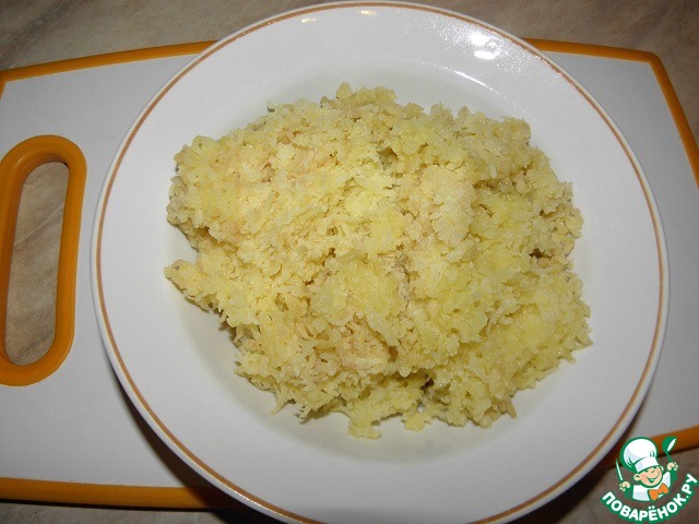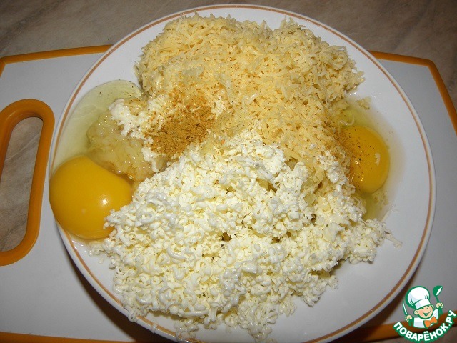 Сливочное масло охладить в морозилке и натереть на мелкой терке, сыр натереть на мелкой терке, чеснок натереть, добавить к картофельной массе, затем добавить яйца, карри и соль с перцем по вкусу.., все хорошо перемешать..
