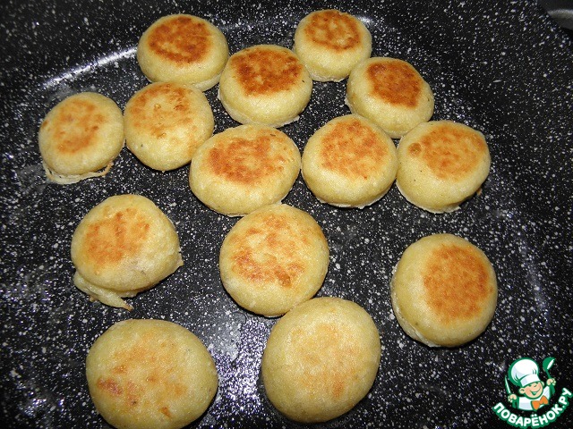 Разогреть масло на сковороде, и обжарить подушечки на небольшом огне, под закрытой крышкой с двух сторон.