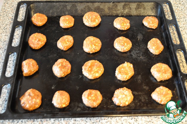 Сразу катаю мокрыми руками шарики и немного прижимаю их, выкладываю на лист.