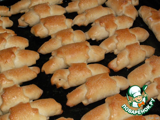Далее дело вкуса. Можно сделать эти рогалики и с начинкой (варенье, мармелад, фрукты). Я делала без начинки.