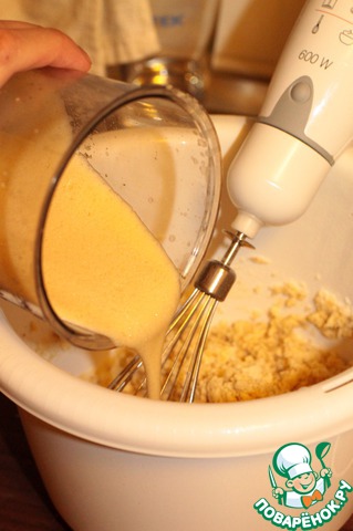 Последний штрих - добавляем яйца с сахаром и все перемешиваем.