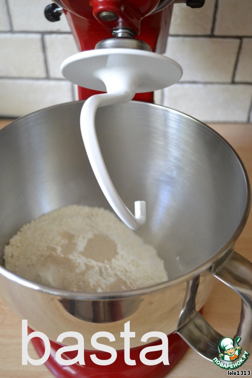 Так как соотношение муки и молока мне показалось не подходящим для моей муки(столько жидкости требуется для муки очень сильной,я использую всегда ту же самую марку и знаю что на стакан жидкости приходится 3 стакана муки)я поступила следующим образом.