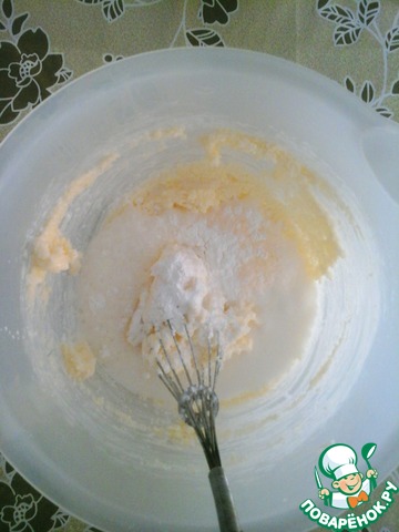 Затем добавить молоко, яйцо, разрыхлитель, ванилин (по желанию). Немного взбить венчиком.