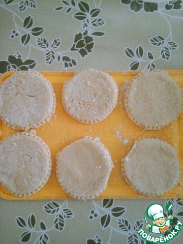 Раскатываем тесто в пласт, толщиной 5-6 мм. и вырезаем формочкой наши коржики.