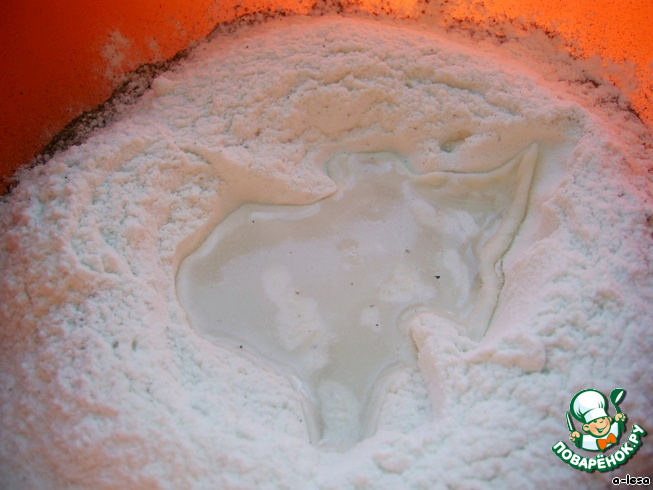Замешиваем простейшее тесто из муки, воды и соли (я добавила чёрный перец - мы любим остренькое).