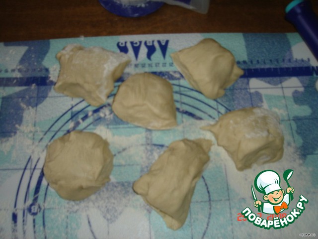 готовое тесто поделить на 6 равных частей