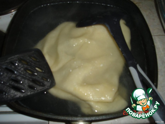 поставить на плиту большую кастрюлю с водой, посолить и довести до кипения (в ней мы будем варить 4 раскатанных слоя из шести)