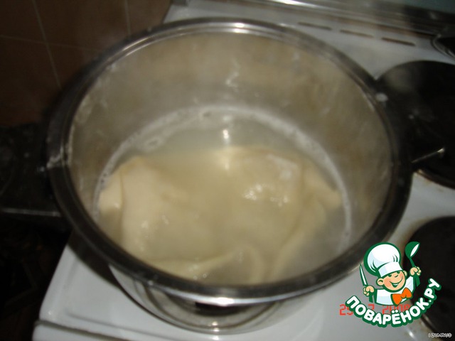 вытаскивая из кипятка, слой теста опускаем в холодную воду