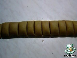 Раскатываем из теста «колбаску» и делим её на части, я делаю это ножом.