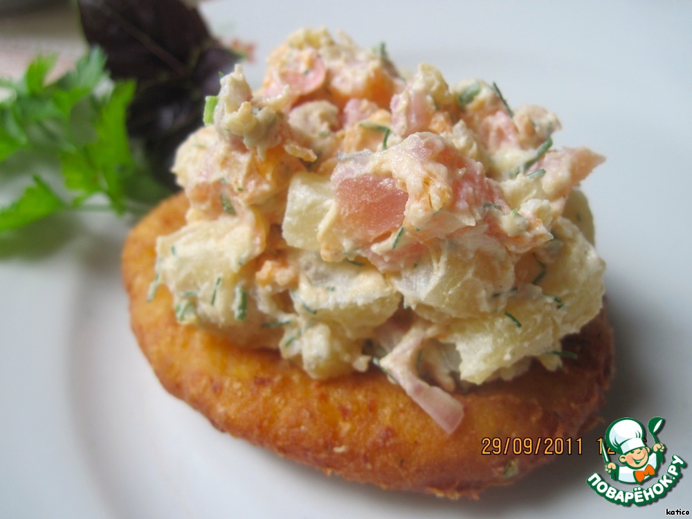 Выкладываем около чайной ложки салата на каждую пышку и все!