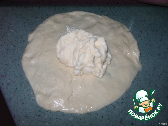 Собираем мешочек из теста. Переворачиваем и, опять же, руками приминаем, создавая лепешку!