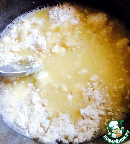 Затем по одному ввести в тесто яйца, каждый раз взбивая хорошенько миксером. Тесто выйдет по консистенции, как густая сметана.