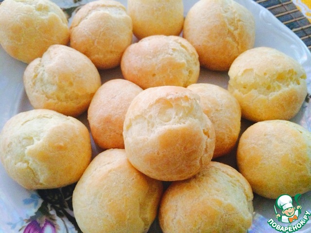 Поставить в хорошо разогретую духовку до 220 градусов и выпекать минут 25-30. Первые 15 минут духовку не открываете, иначе профитрольки упадут. Профитроли должны хорошо подсушиться и увеличиться в размере в два раза.
