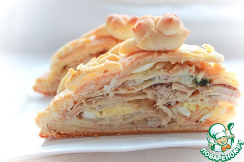 | Курник слоеный пирог с блинами и разными начинками. Пирог для особых случаев, что-бы его приготовить нужно время. Но этот пирог того стоит. Я долго присматривалась и наконец приготовила. Результом очень довольна. Рекомендую. |