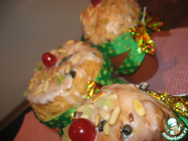 Смазываем глазурью верхушки у штолленов, украшаем кедровыми орешками и цукатами.