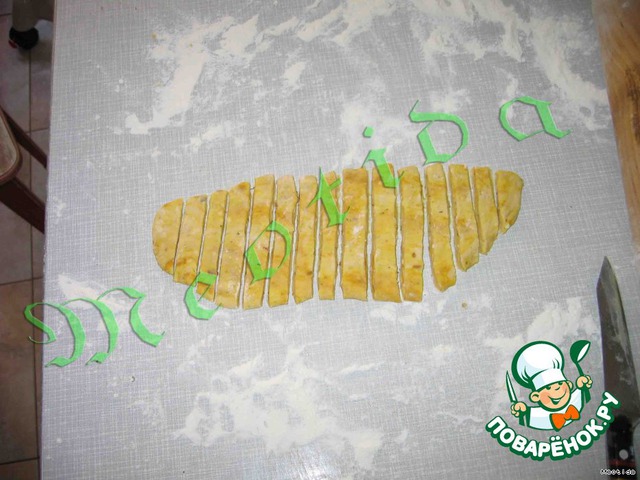 тесто раскатать и нарезать ножом