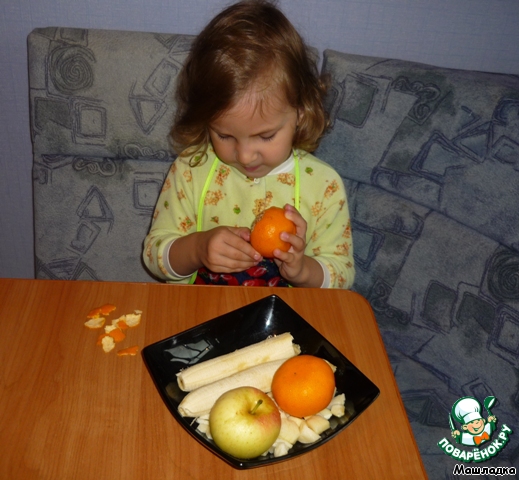 Что бы вы ни готовили на кухне, для детей всегда найдется какое-нибудь доступное по возрасту занятие. Например, почистить фрукты. Это не только помощь маме, но и польза деткам - развивается мелкая моторика и ловкость пальчиков.