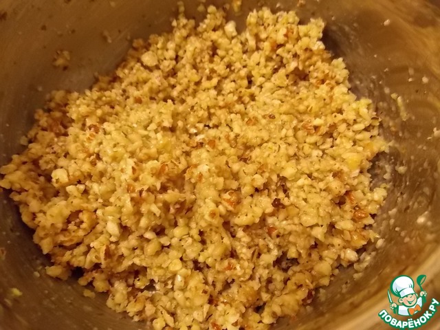 НАЧИНКА - в кастрюлю положить масло, сахар, ванилин и воду, перемешать. Довести до кипения, снять, положить орехи и перемешать.