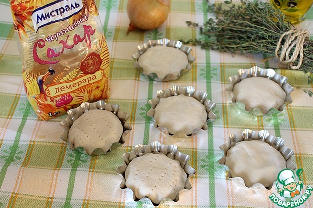 Тесто раскатать, вырезать кружки чуть больше диаметра формочек.
