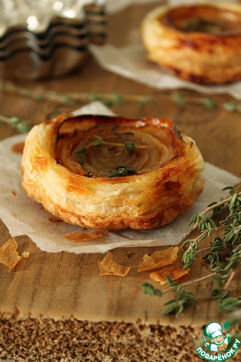 Мини-тарты татен с карамелизованным луком