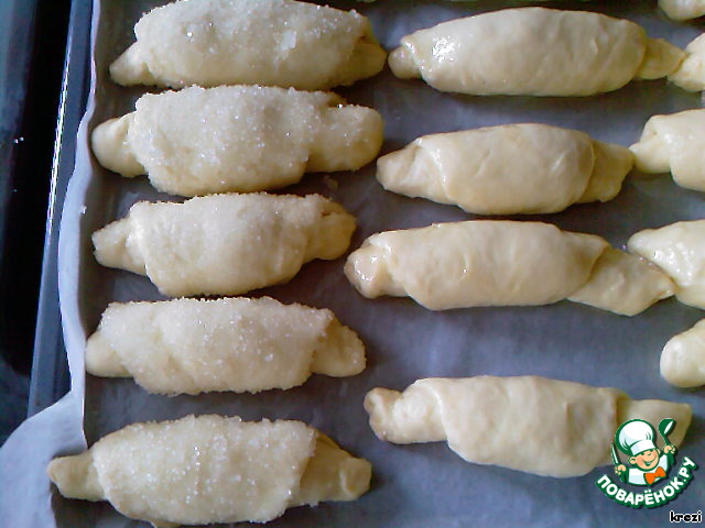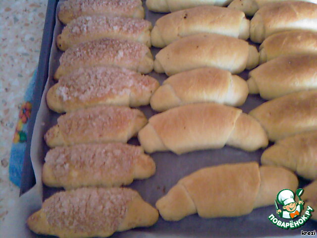 Это рецепт для новичков, которые с дрожжевым тестом на ВЫ. Дрожжей на первый взгляд многовато. Тесто зреет быстро (полтора часа), только обминать не надо. Сразу брать и выпекать. Пока будете крутить рогалики, тесто поднимется. Если захочется с капусткой, то меньше сахара, если кто любит сладенькое, можно и больше чем 0, 5 стакана. А с вареньем - сахара чуть-чуть