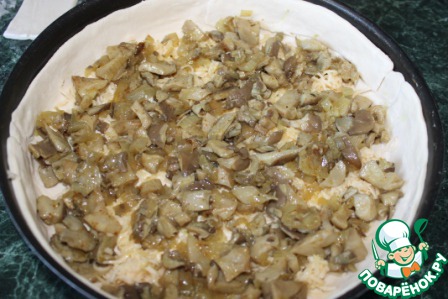 Следующий слой - пережаренные грибы с луком.